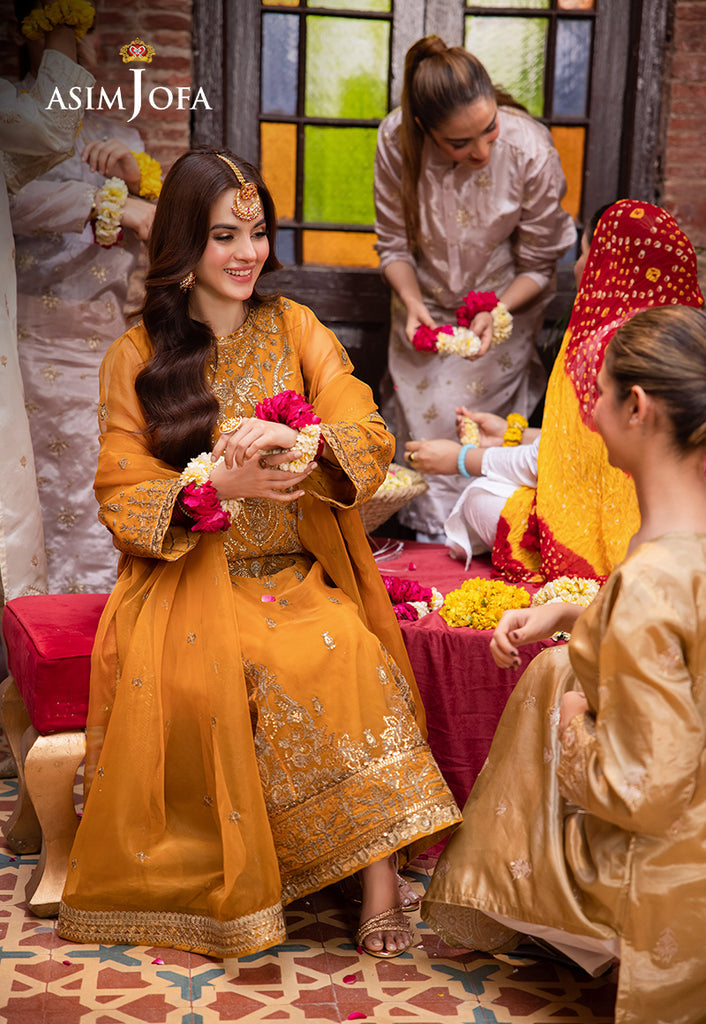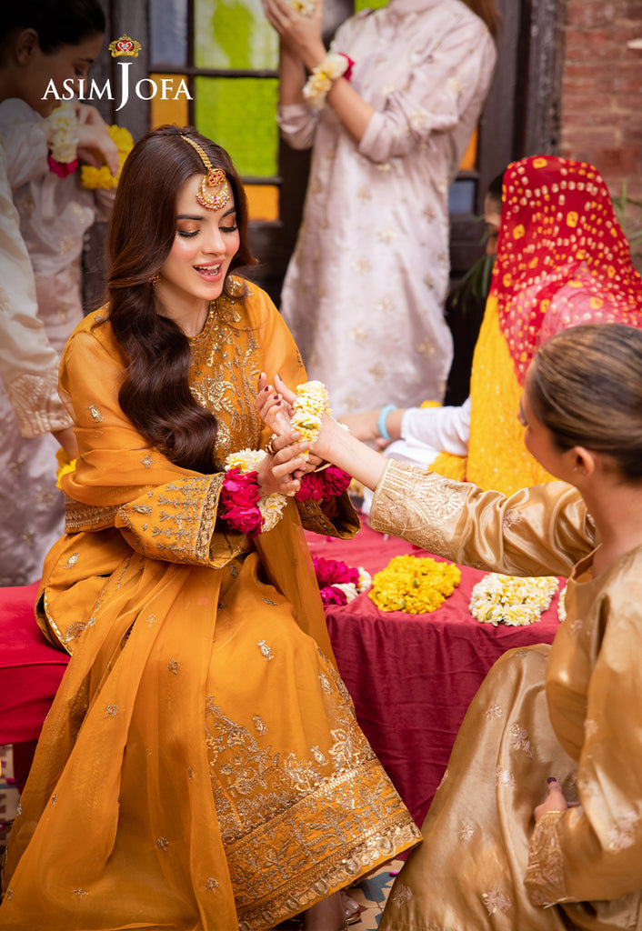 Immerse yourself in a sunlit meadow with this delightful sunshine-infused masterpiece. The mustard-hued shirt boasts embroidery that bursts with the joy of a harvest festival, embellished with warm honey-toned sequins accented by antique gold zariwork. This intricate artistry elevates the airy organza, transforming it into a canvas that radiates warmth like a summer sun. Paired with an embroidered, flowing dupatta featuring beautiful motifs, matches the regalia of the shirt with its serenity, unlocking a cultural treasure reimagined for the modern women