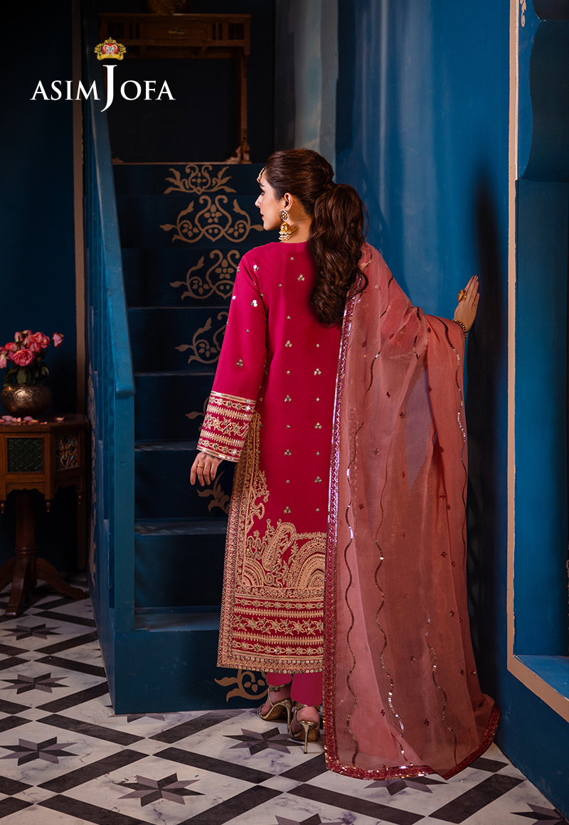 Bask in the beauty of a ruby rose with this earth red ensemble paired with a petal pink dupatta. Like petals unfolding, intricate aari stitching and gold lurex adorn the shirt with 9mm and 3mm sequins scattered delicately while gracing the borders. The embroidered neckline for front blooms with elegance while the embroidered sleeves with borders exude grace. With embroidered border for chaak and daman as well as embroidered daman patches, this ensemble is a tribute to the timeless beauty of a rose in full bloom. Wrap yourself in the embroidered dupatta adorned with 5mm sequins on border and let the fragrance of elegance surround you