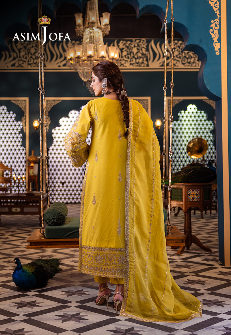 Shine bright like the sun in this gleaming yellow ensemble adorned with antique gold zari work and radiant 3mm sequins. Like beams of sunshine, the dull beige threadwork adds warmth and depth to the fabric. With embroidered panels and back, this ensemble captures the essence of a sunny day. The embroidered border for the daman and sleeves with borders glisten with sophistication while the embroidered motifs for sleeves and border for chaak dance like sunbursts. Wrap yourself in the embroidered dupatta with four-side borders and spread joy like rays of sunshine wherever you go