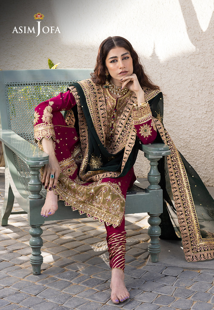 Stand out in a crowd with Asim Jofa's latest collection - 'MERA HASEEN JORA' in a bold and striking ruby hue. The ensemble is crafted from luxurious raw silk, boasting intricate zardozi embroidery inspired by timeless Mughal motifs. But it's the emerald dupatta that truly elevates the look with its delicate sheen and elegant draping. The ensemble has already been spotted on the ever-so-elegant Syra Yousuf, radiating an unparalleled allure. Don't miss out this chance to add some 'HASEEN JORA' to your wardrobe and stay voguish all season long.