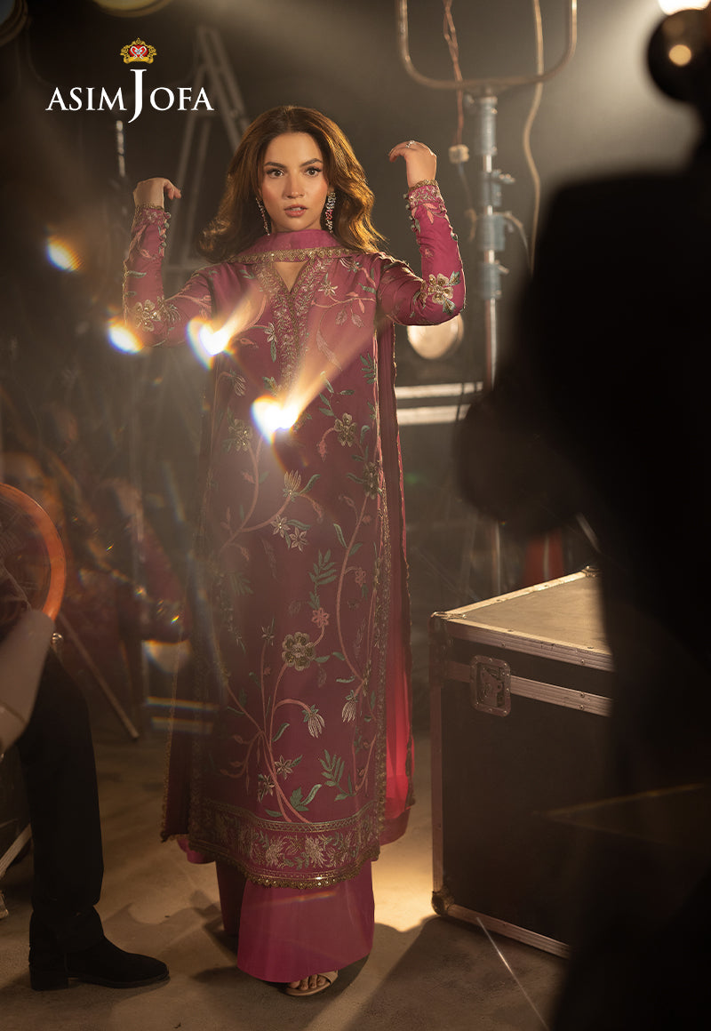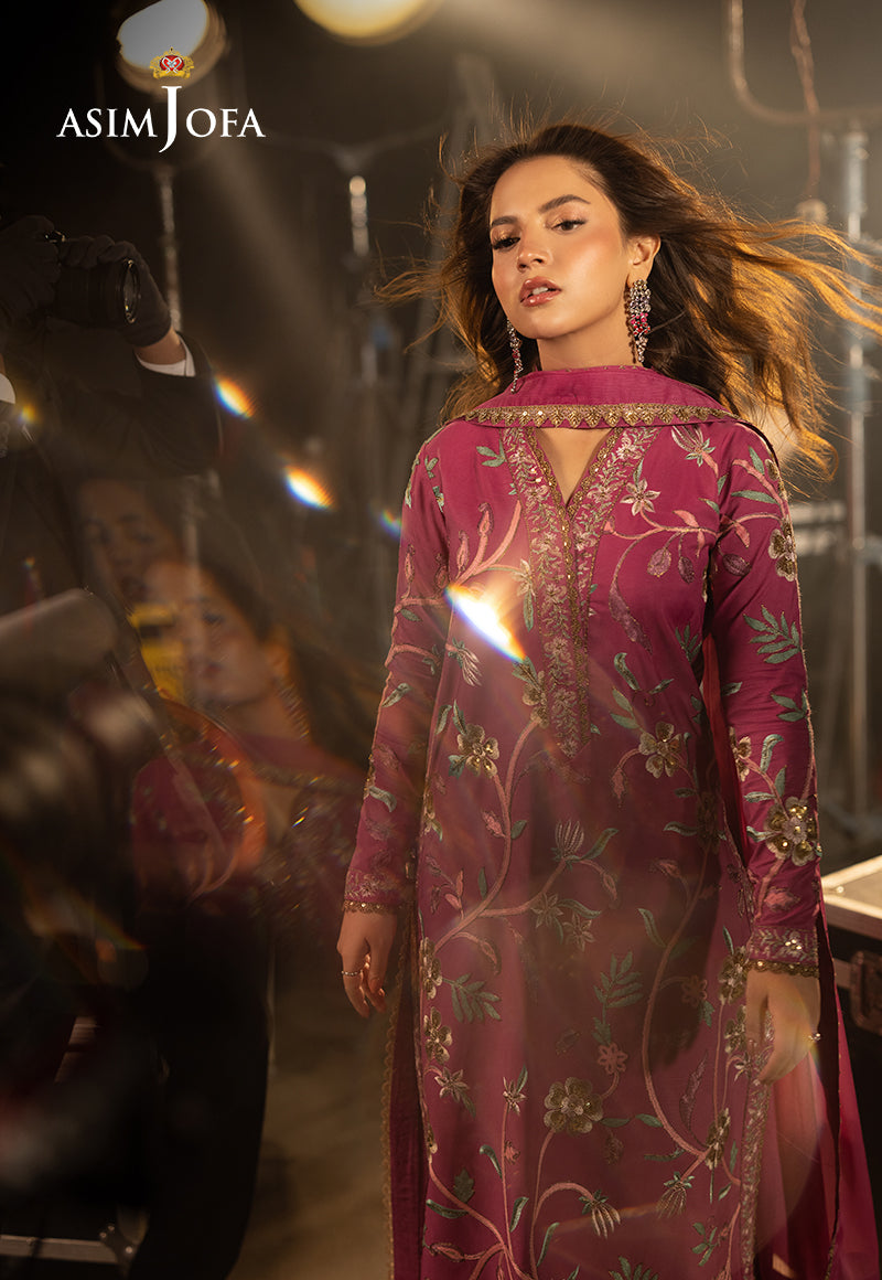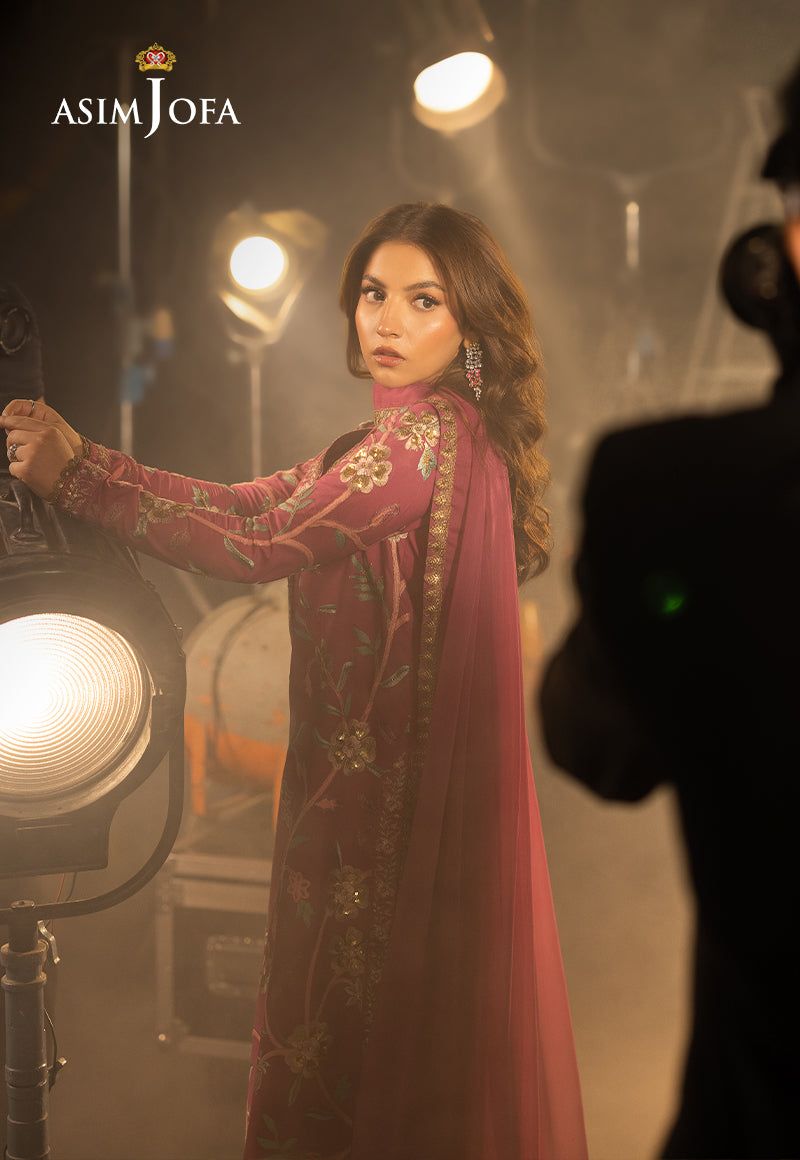 Soft as a faded rose at dawn, this dull pink ensemble exudes quiet elegance. The shirt is beautifully embroidered in a flowing foliage pattern, where light gold zari and sequins catch the light with subtle brilliance. Hints of pink and sage green threadwork breathe life into the embroidery, creating a delicate harmony of color and texture. Paired with an airy chiffon dupatta that drapes like a gentle breeze, this ensemble is a poetic expression of grace and understated luxury.