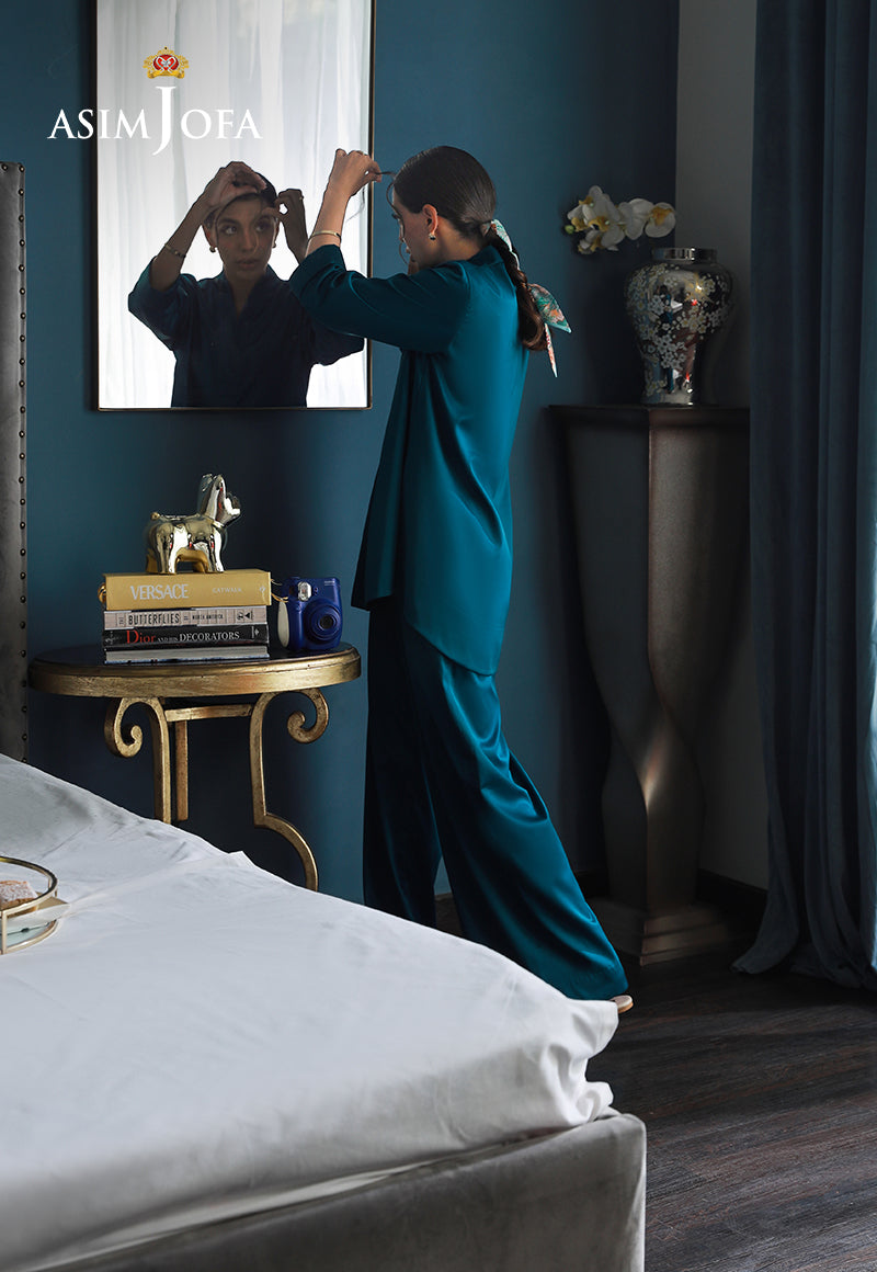 Escape to a tranquil oasis with this soothing teal loungewear set. Its calming hue will transport you to a peaceful state of mind.