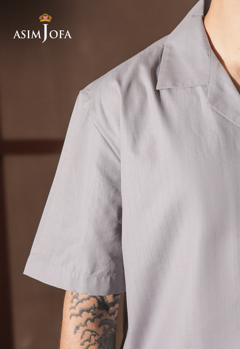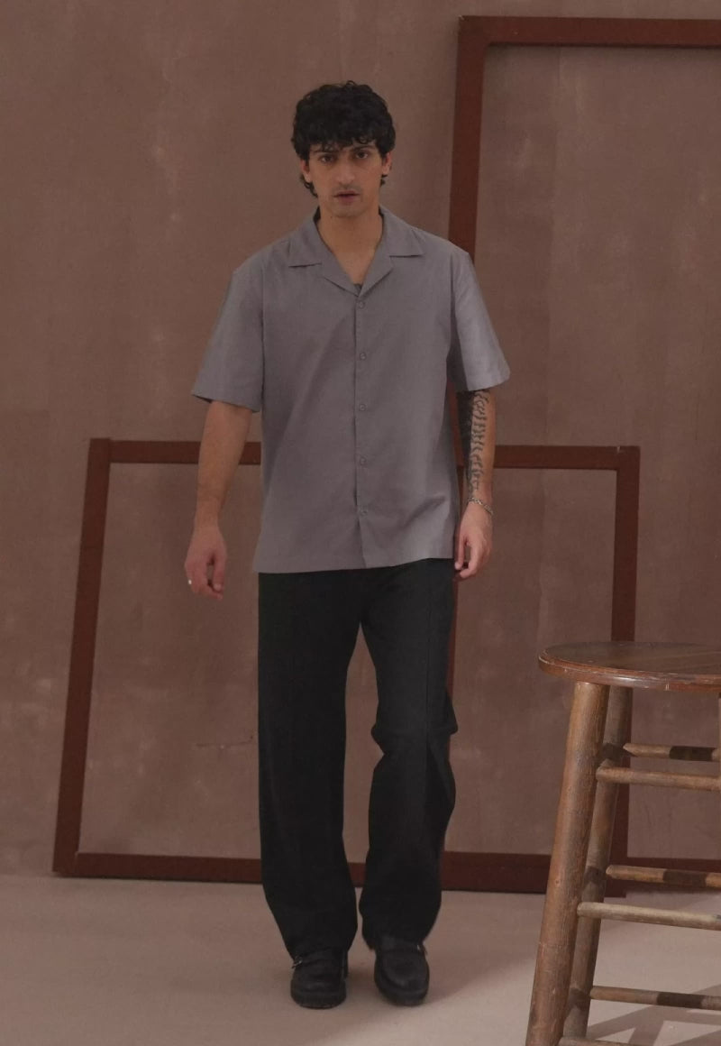 Subtle style meets structured comfort in this light gray Cuban collar shirt. With clean buttons and half sleeves, it speaks to the man who appreciates minimalism with just the right touch of polish.