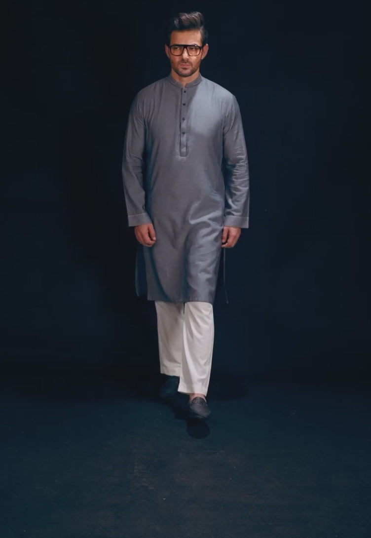 Subtle yet distinguished, this dobby grey kurta is tailored for a man of taste and power. Its tactile weave and versatile tone blend tradition with modern flair, ideal for casual gatherings or serene moments of reflection.