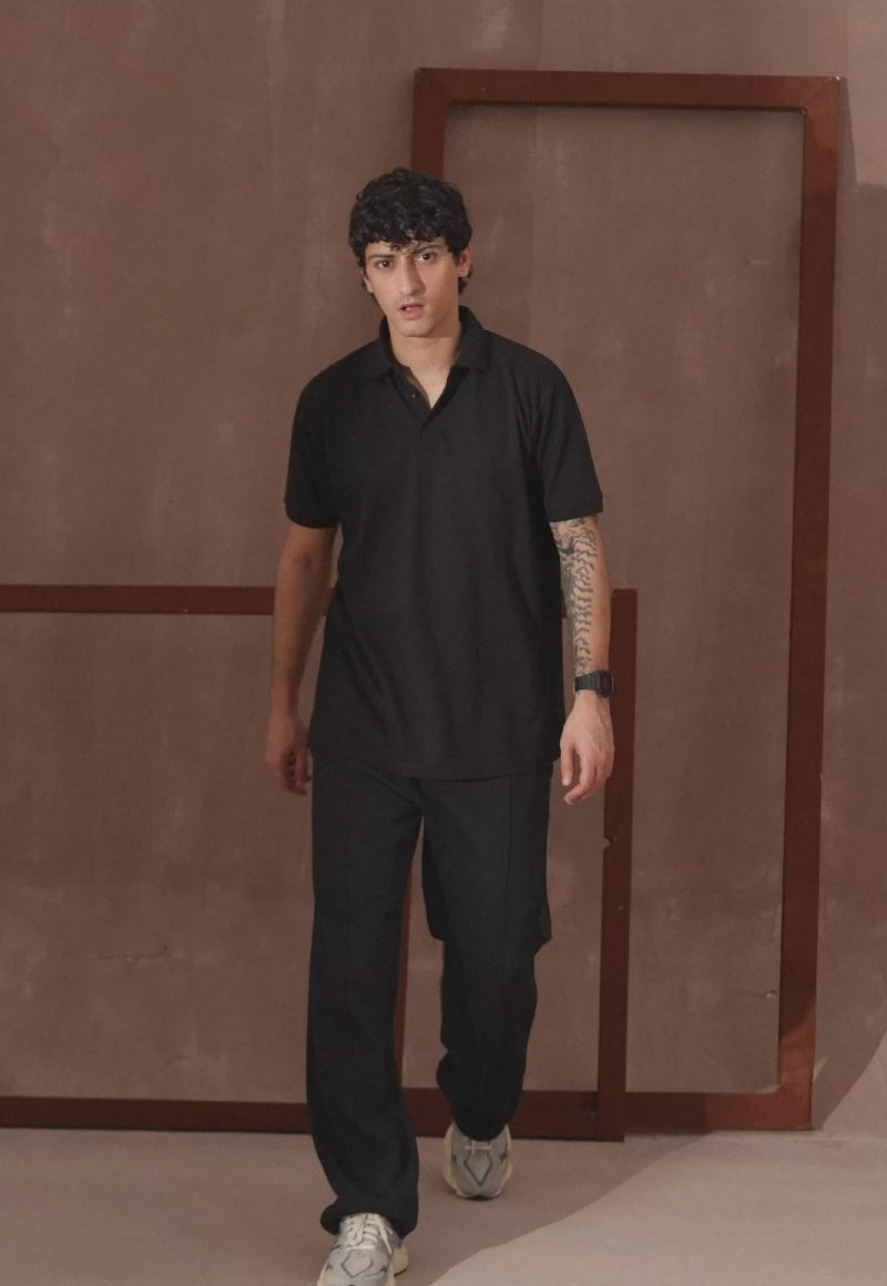 Understated, unfazed, undeniable—this black polo with a relaxed collar is built for the minimalist who makes every move count. It’s cool tone and easy structure speak volumes without saying a word.