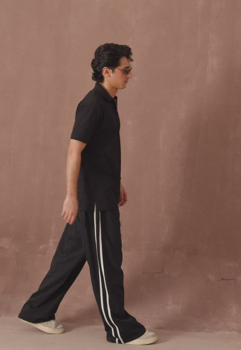This black zipper polo redefines edge with simplicity. Sleek and confident, the hidden strength lies in the details—tailored form, deep tone, and a zip that adds just enough attitude to keep it sharp.