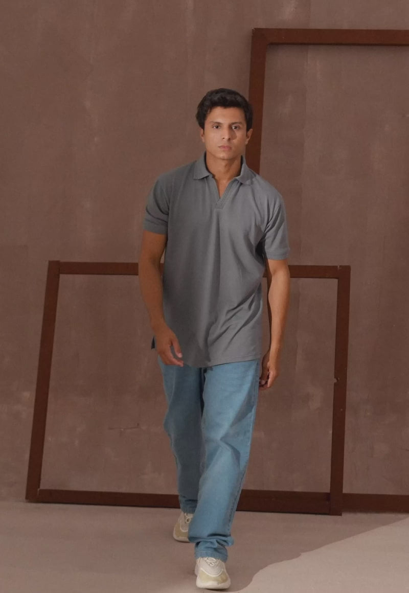 Cool and composed, this light grey polo with a relaxed collar is a study in effortless style. Its laid-back vibe and muted shade offer the perfect base for understated confidence and everyday class.