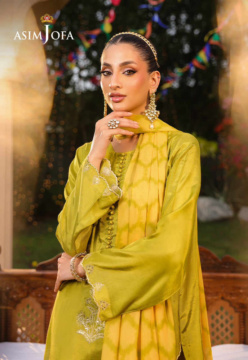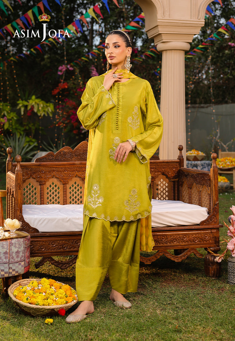 Embrace timeless charm in this stunning light green ensemble, featuring the season's star— the Farshi Shalwar. The exquisitely embroidered shirt is adorned with rouleau loop buttons along the front, while intricate embroidered motifs gracefully enhance the fabric. The hem of the shirt and sleeves feature mesmerizing cutwork embroidery, adding an artistic touch. Paired with a beautifully crafted Farshi shalwar and a lightweight printed dupatta, this ensemble is a true celebration of festive elegance.