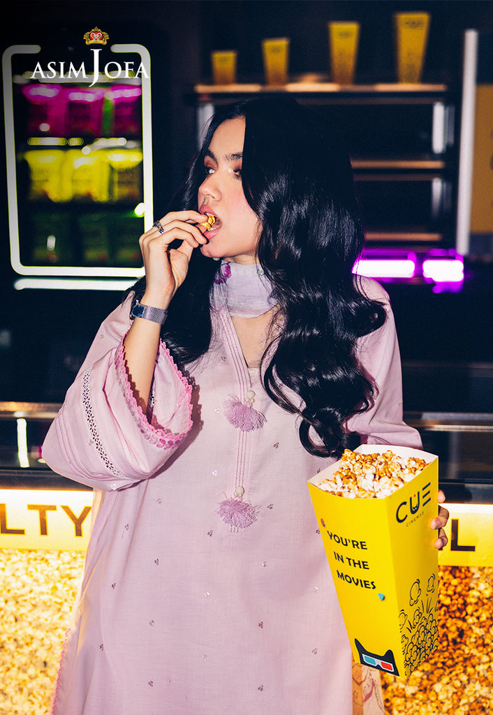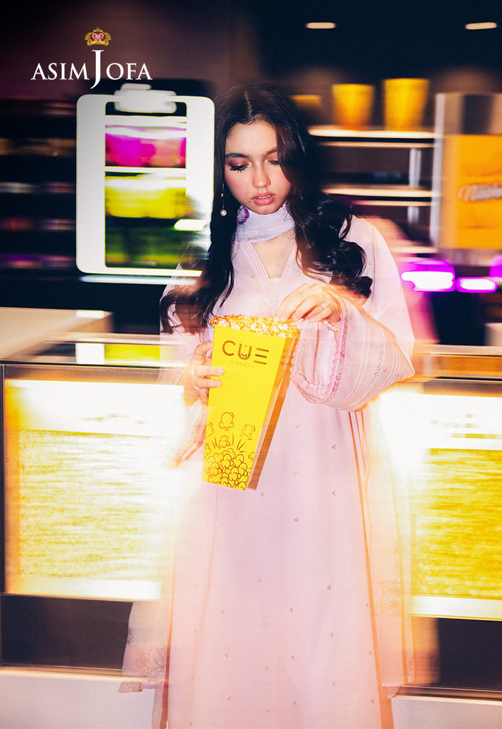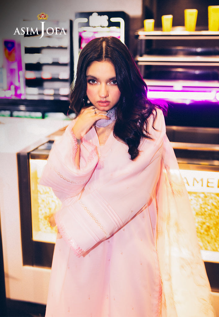 Drape yourself in the delicate pastel pink of Asim Jofa’s “Essential Pret” Collection. This three-piece cambric set with cationic chiffon dupatta as worn by Aina Asif, is a canvas of grace offering a fresh take on traditional elegance. It’s the perfect ensemble for the girls who make every sidewalk her runway.