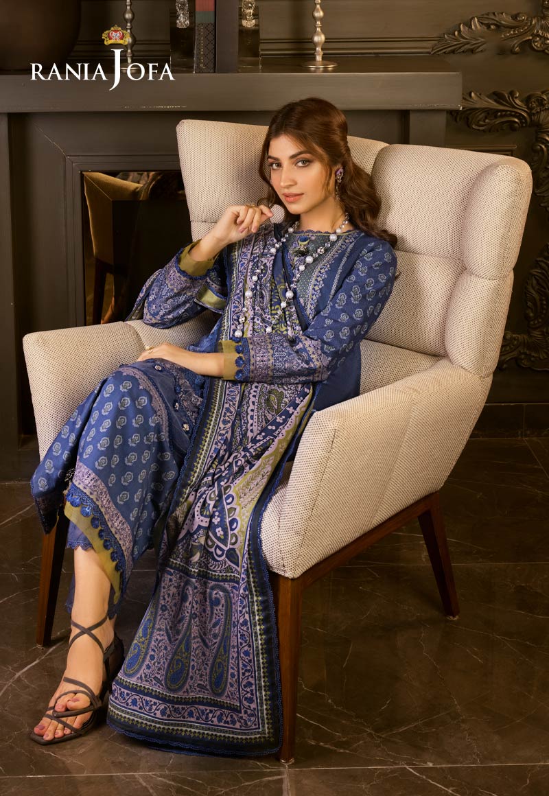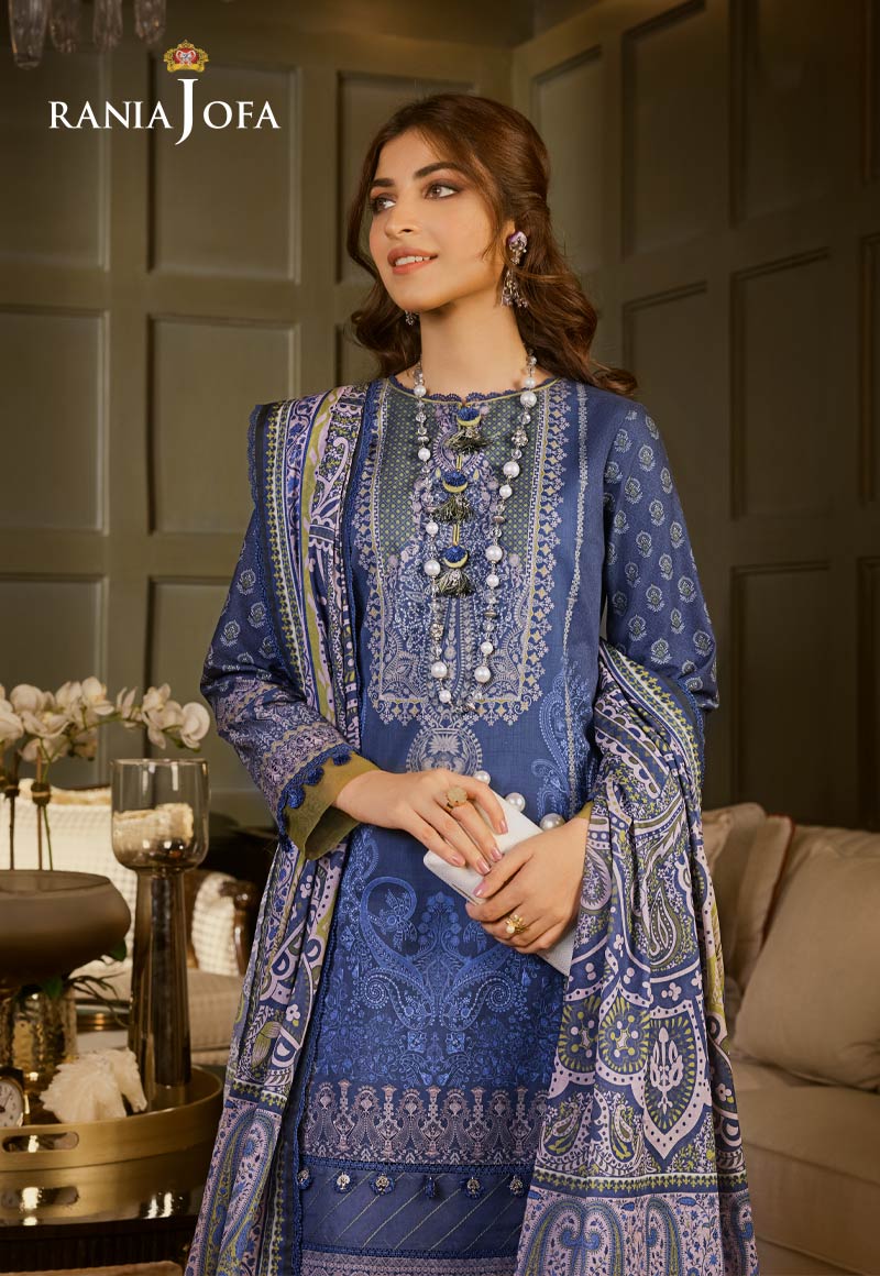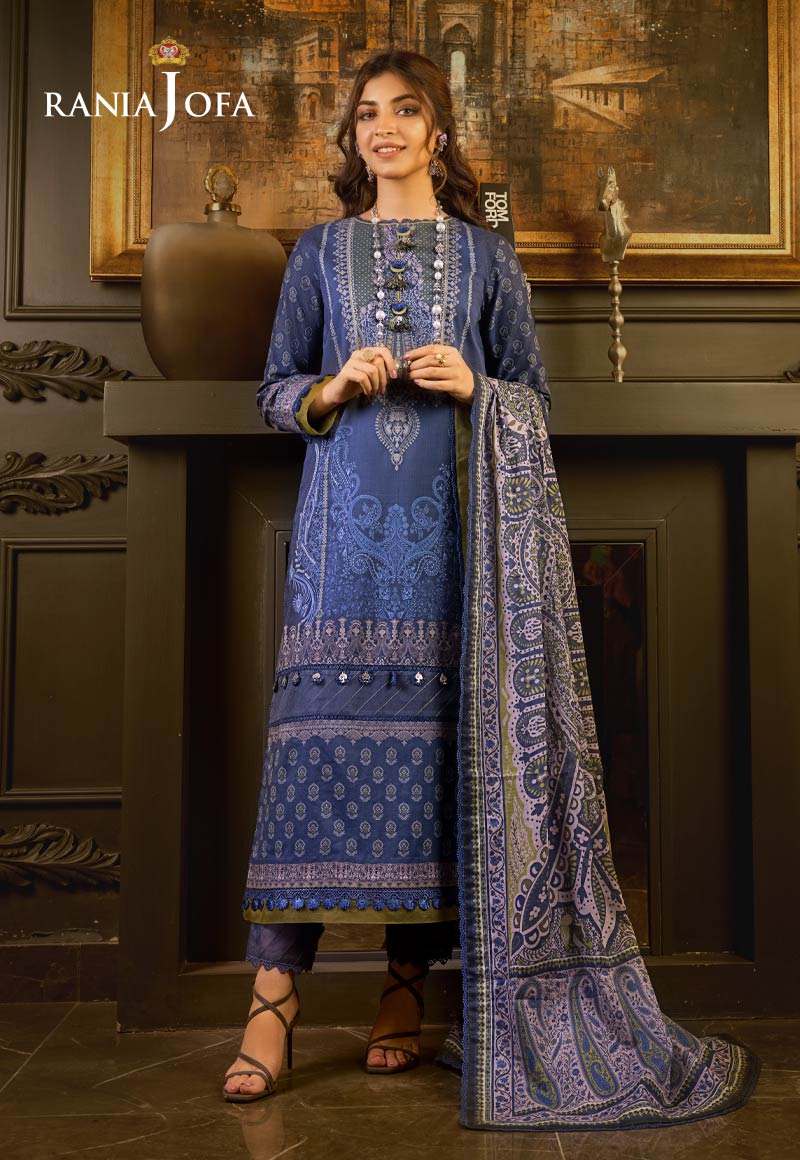 Taking inspiration from paisley motifs this print captures the intricacy of embroidery. A beautiful use of monotones with light lilac & dull green makes this design unique. This design features a heavily printed lawn dupatta & dyed cotton pants.