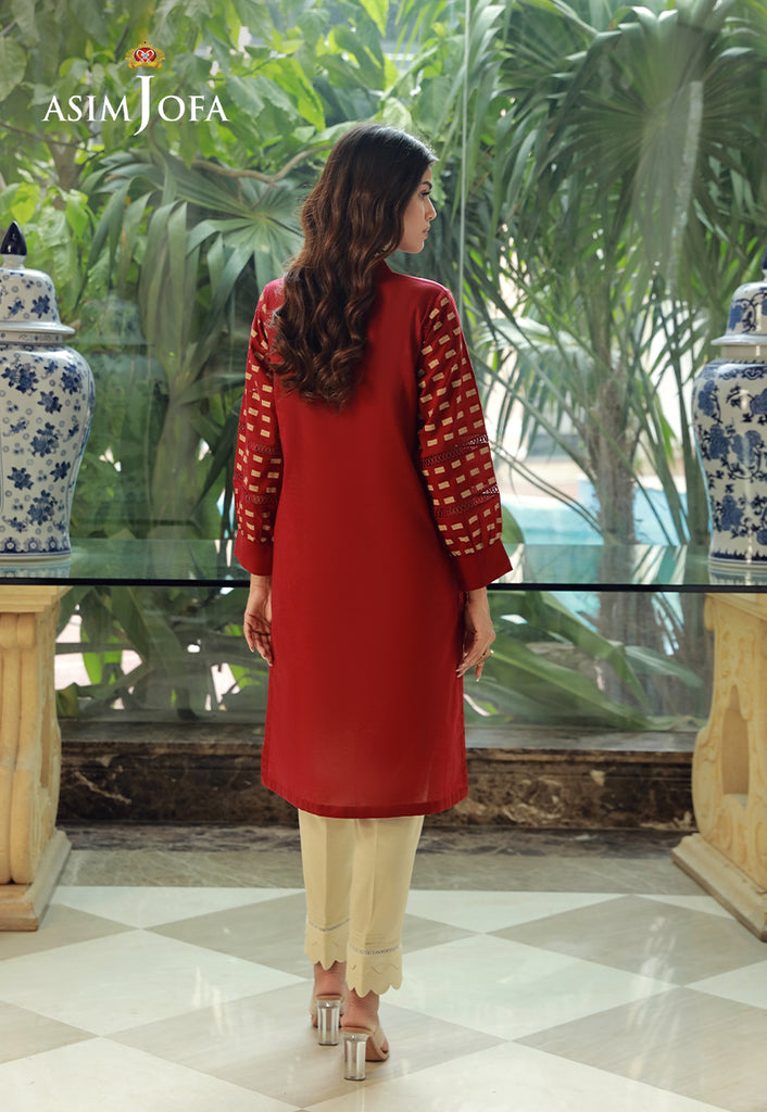 Make a bold statement with this red shirt featuring a contrasting dash print. The modern design and eye-catching colors create a dynamic and stylish look.