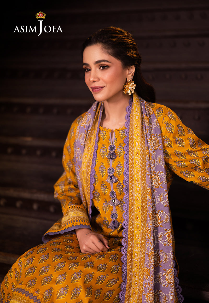 Infuse timeless elegance into your wardrobe with this mustard ensemble, featuring damask-inspired motifs across the shirt. The contrasting dupatta adds a vibrant touch, making it perfect for any occasion.