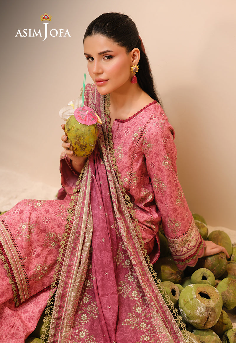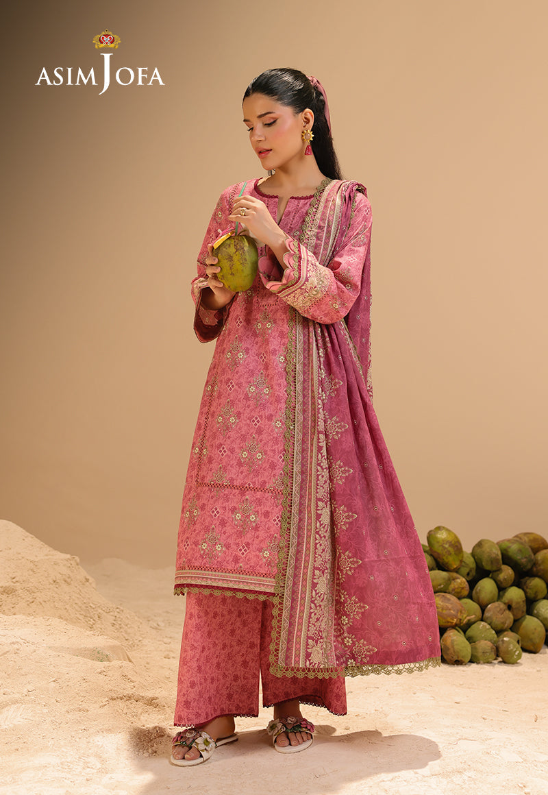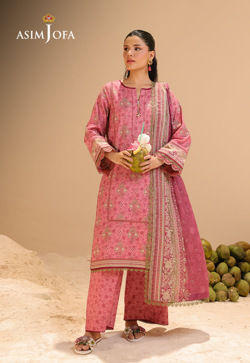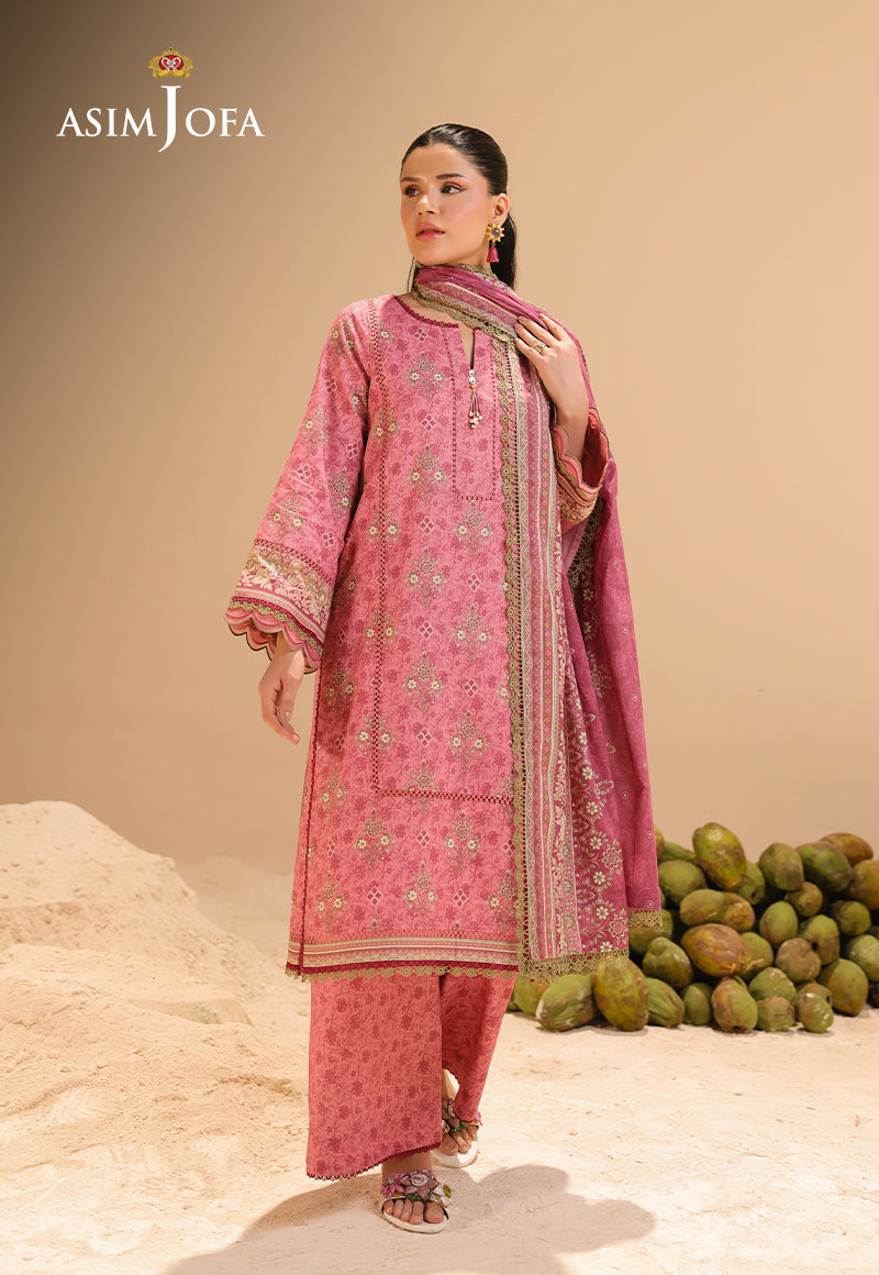 Like a pastel garden in full bloom, this pink ensemble radiates freshness with its floral print. The shirt speaks of springtime charm, the printed trousers provide a coherent look and the printed dupatta, like a trailing vine in motion, adds a graceful finish to this carefree and captivating look.