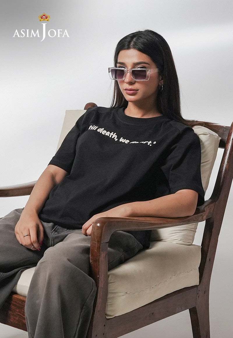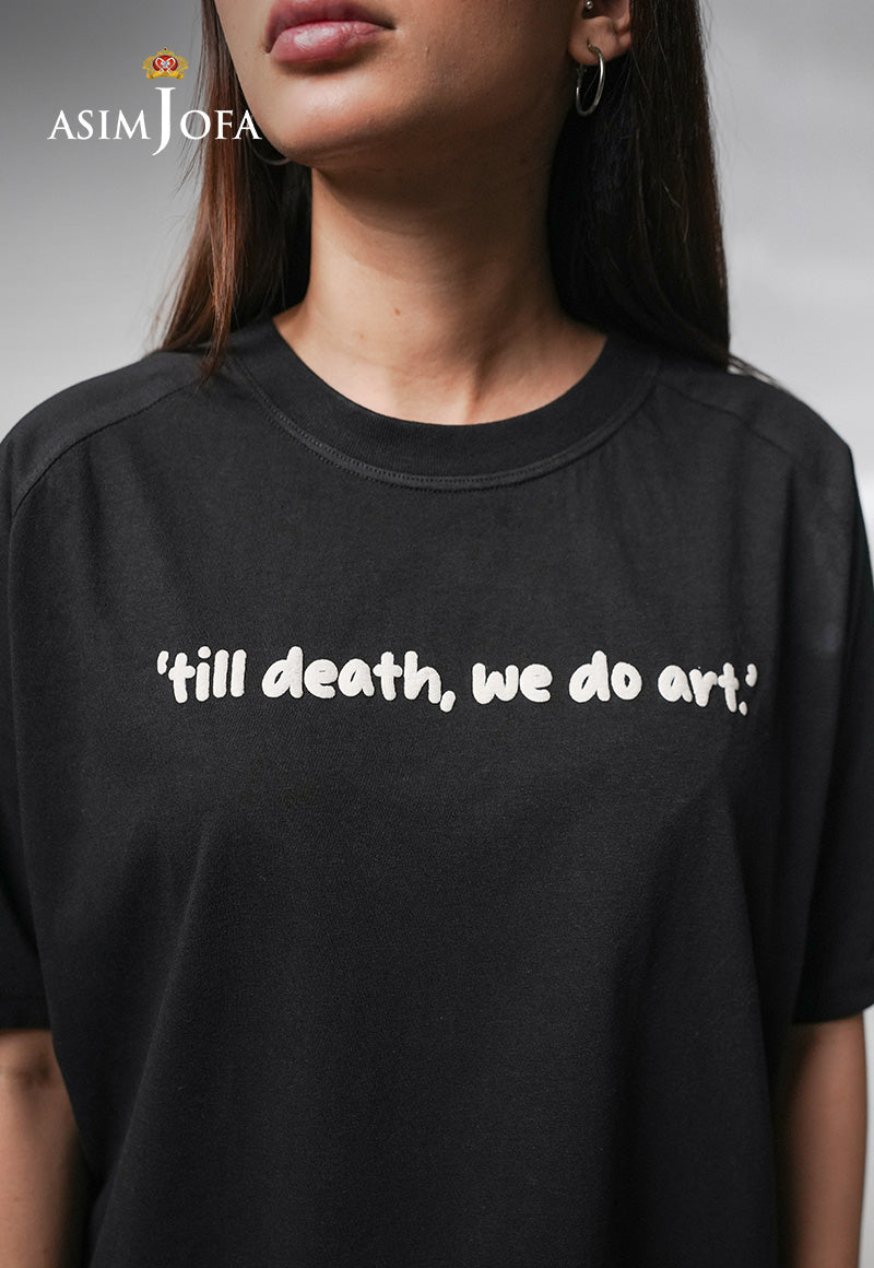 For the ones who wear rebellion like a badge. This black graphic tee with bold white typography that says “till death we do art” is an unapologetic shout-out to creativity, individuality, and a little edge. Streetwear with soul.