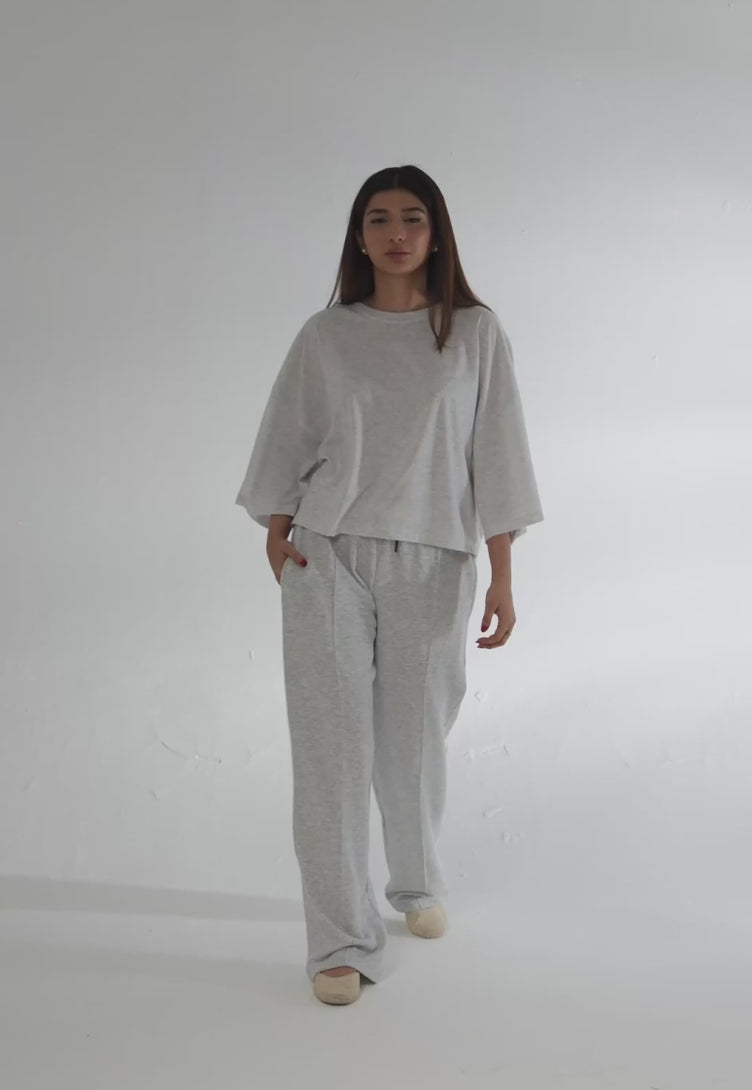 Made for the in-between moments—where lounge meets street. These grey trousers have a soft structure that flows with your movement. Understated, versatile, and endlessly wearable.